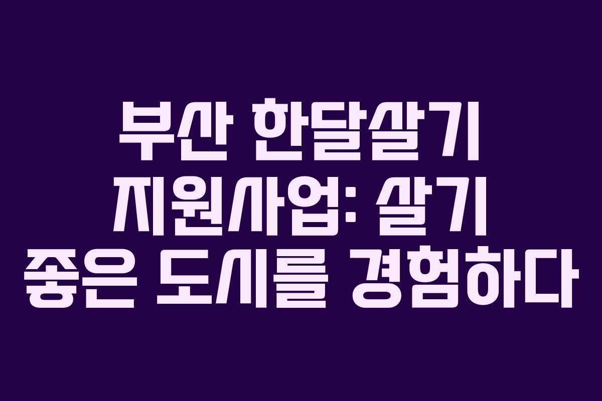 2023년 부산에서 진행되는 한달살기 지원사업은 부산의 매력을 직접 체험할 수 있는 기회를 제공합니다. 이 프로그램은 부산의 원도심(중구, 동구, 서구, 영도구)에서 머무르며, 지역의 역사와 문화를 깊이 있게 경험할 수 있도록 돕습니다.