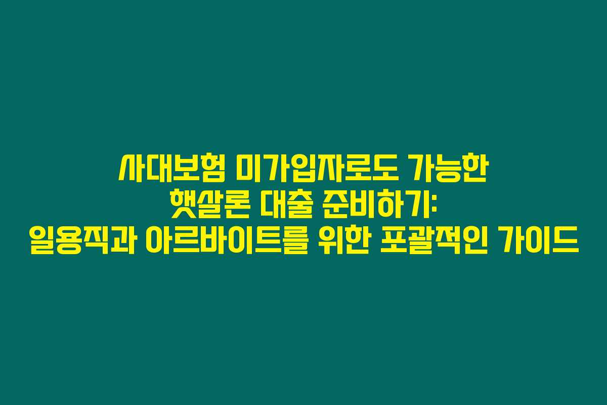 사대보험 미가입자로도 가능한 햇살론 대출 준비하기: 일용직과 아르바이트를 위한 포괄적인 가이드