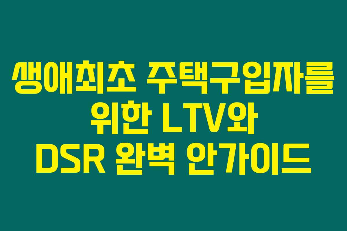 생애최초 주택구입자를 위한 LTV와 DSR 완벽 안가이드