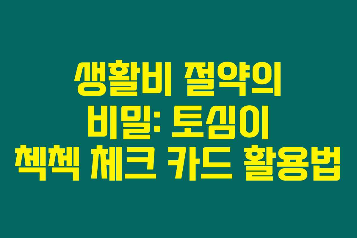부산물처럼 다가오는 지출을 효율적으로 관리하고, 토심이 첵첵 체크 카드의 혜택을 최대한 활용해 보는 것은 정말 스마트한 경제적 결정이 아닐까요? 이렇게 다양한 혜택을 잘 활용하면 생활비 관리가 한층 더 쉬워질 것입니다.