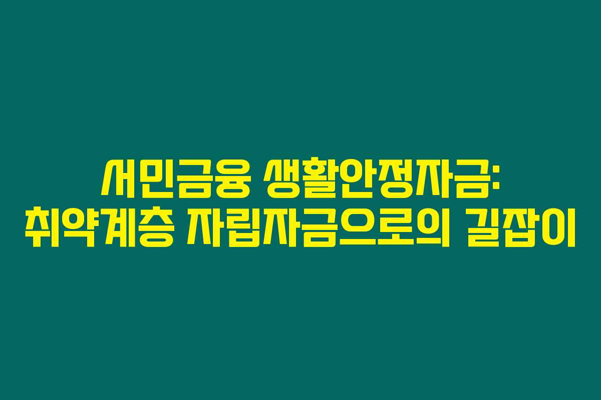 서민금융 생활안정자금과 미소금융의 취약계층 자립자금, 잘 알고 계신가요? 만약 자립의 기회를 놓치고 싶지 않다면, 이 내용을 꼭 체크해야 해요. 많은 분들이 자존감에 영향을 받곤 하는데, 이 자금을 통해 자립의 초석을 쌓을 수 있거든요. 취약계층을 위한 자금 지원이 궁금하다면 아래를 읽어보시면 도움이 될 거예요!