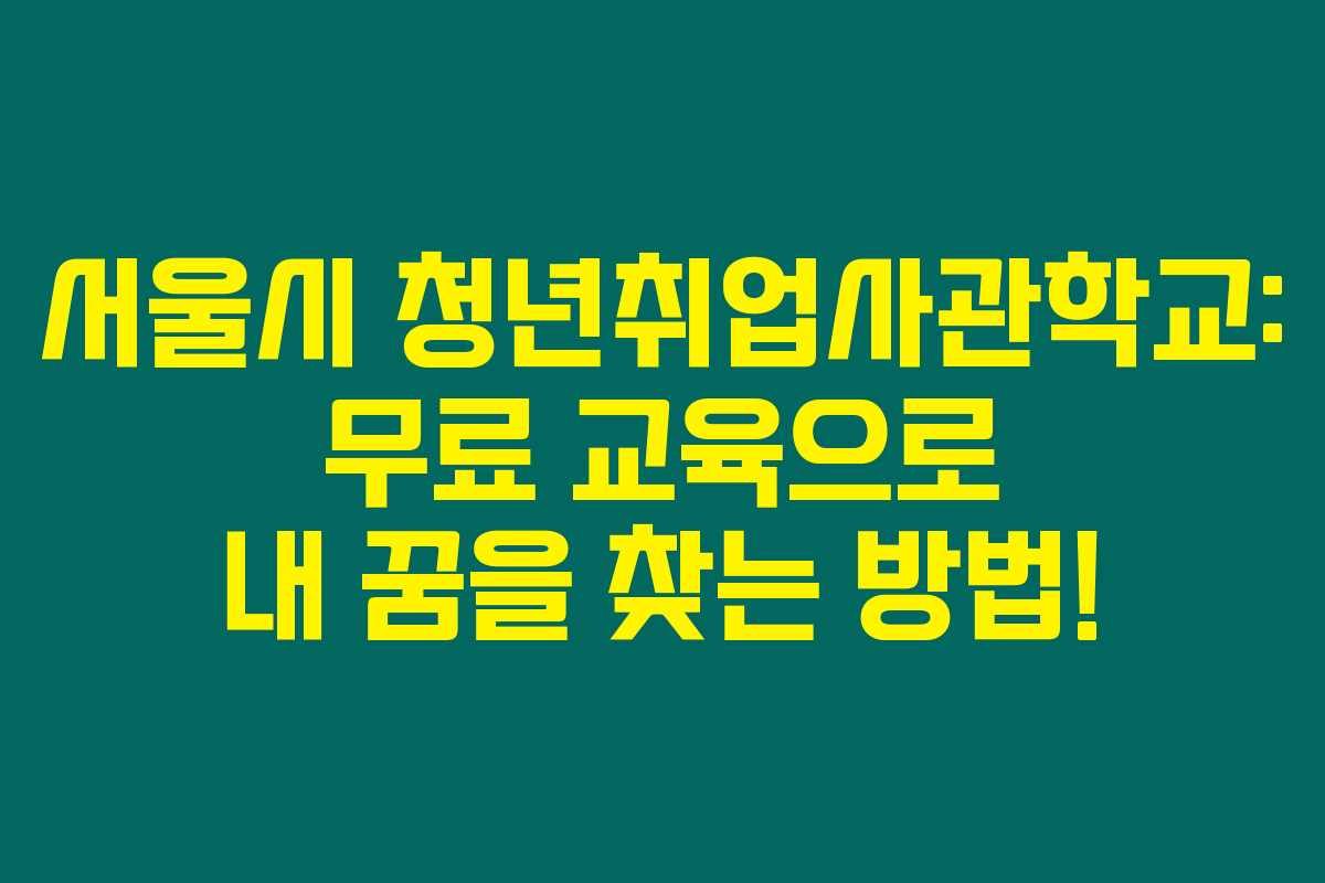 서울시 청년취업사관학교: 무료 교육으로 내 꿈을 찾는 방법!