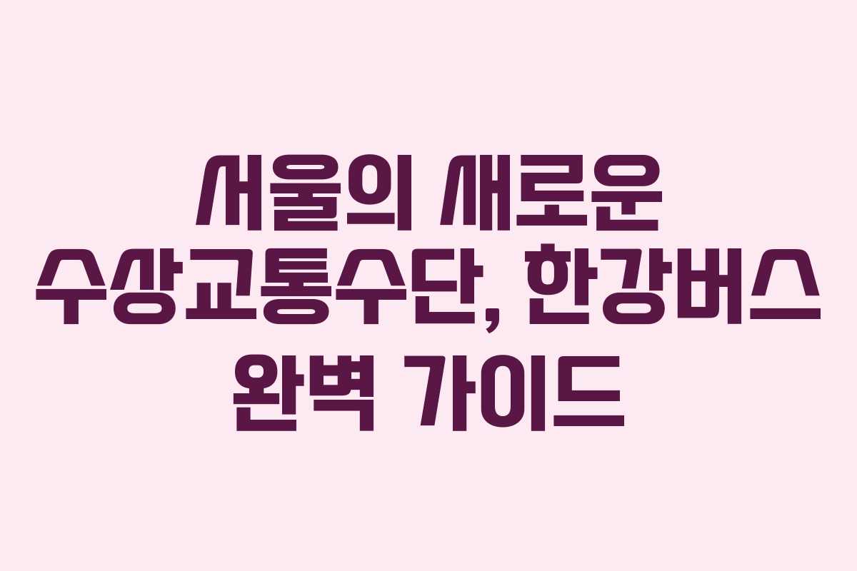 서울의 새로운 수상교통수단, 한강버스 완벽 가이드
