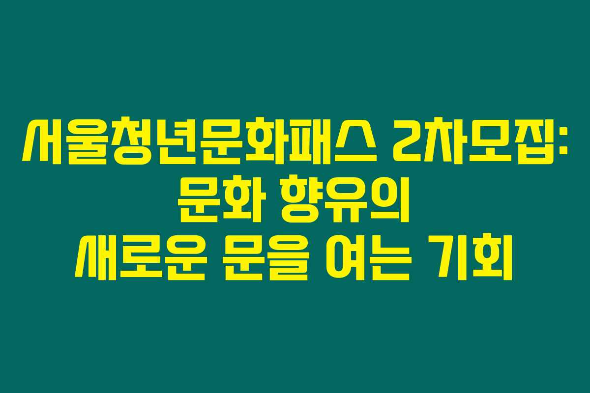 서울청년문화패스 2차모집: 문화 향유의 새로운 문을 여는 기회