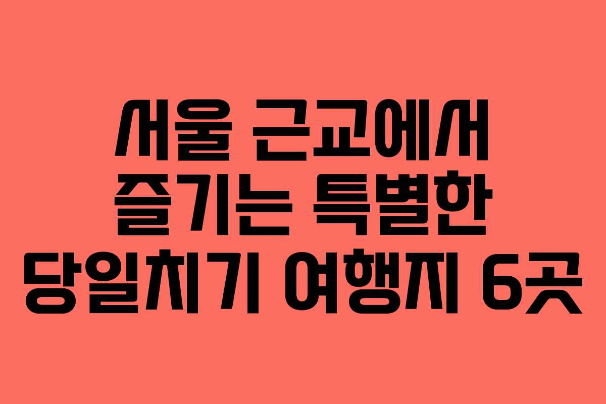 서울의 바쁜 일상에서 벗어나고 싶다면, 서울 근교에 위치한 매력적인 여행지들을 방문해보세요. 여기서는 짧은 시간 안에 힐링과 즐거움을 동시에 느낄 수 있는 당일치기 여행지 6곳을 소개합니다. 각 여행지는 독특한 매력을 지니고 있어 취향에 따라 선택할 수 있는 다양한 경험을 제공합니다.