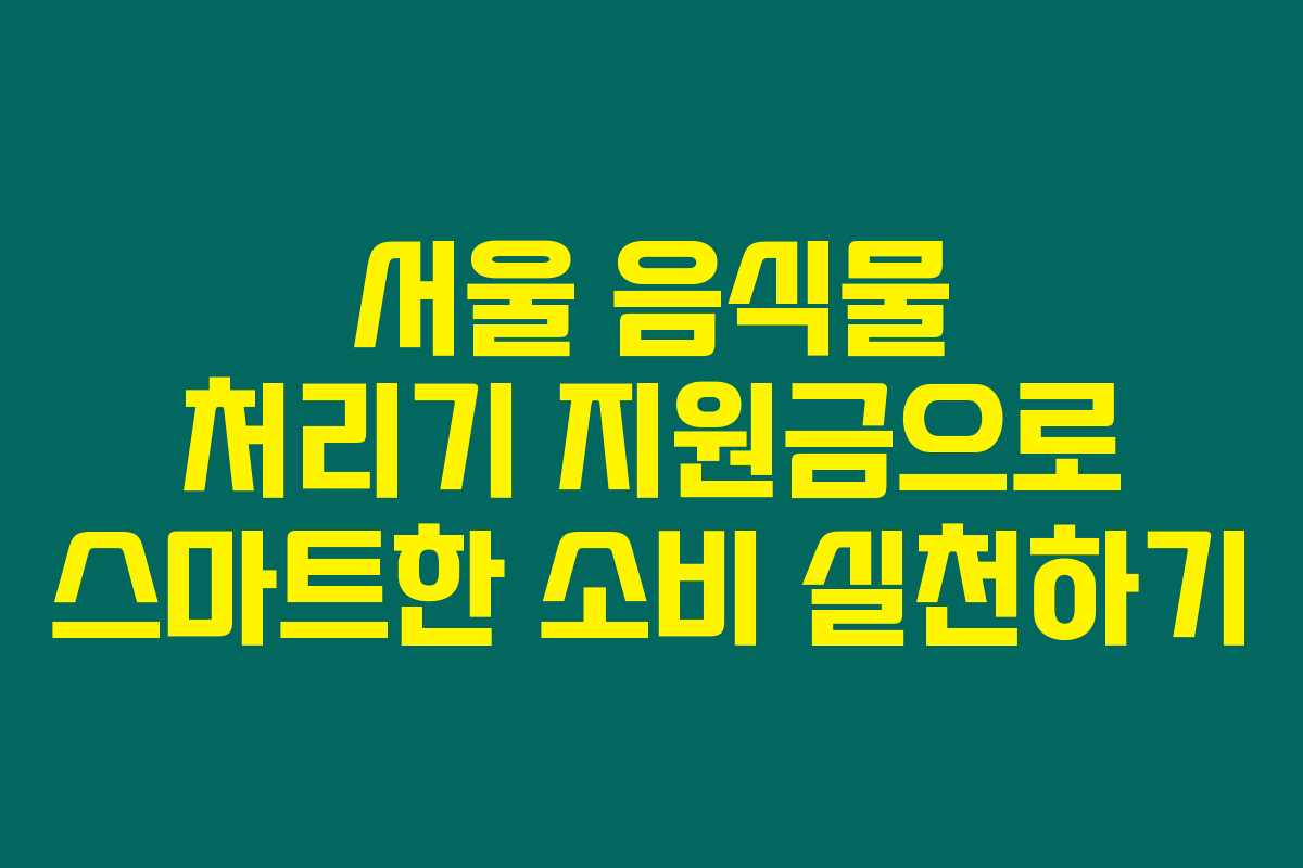 서울 음식물 처리기 지원금으로 스마트한 소비 실천하기
