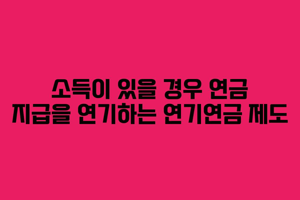 국민연금은 많은 사람들이 궁금해하는 중요한 제도입니다. 특히 소득이 있을 경우 연금을 나중에 받고 싶은 분들을 위해 연기연금 제도를 소개합니다. 이 제도는 노령연금 수급자가 연금 지급을 연기할 수 있는 방법을 제공합니다.