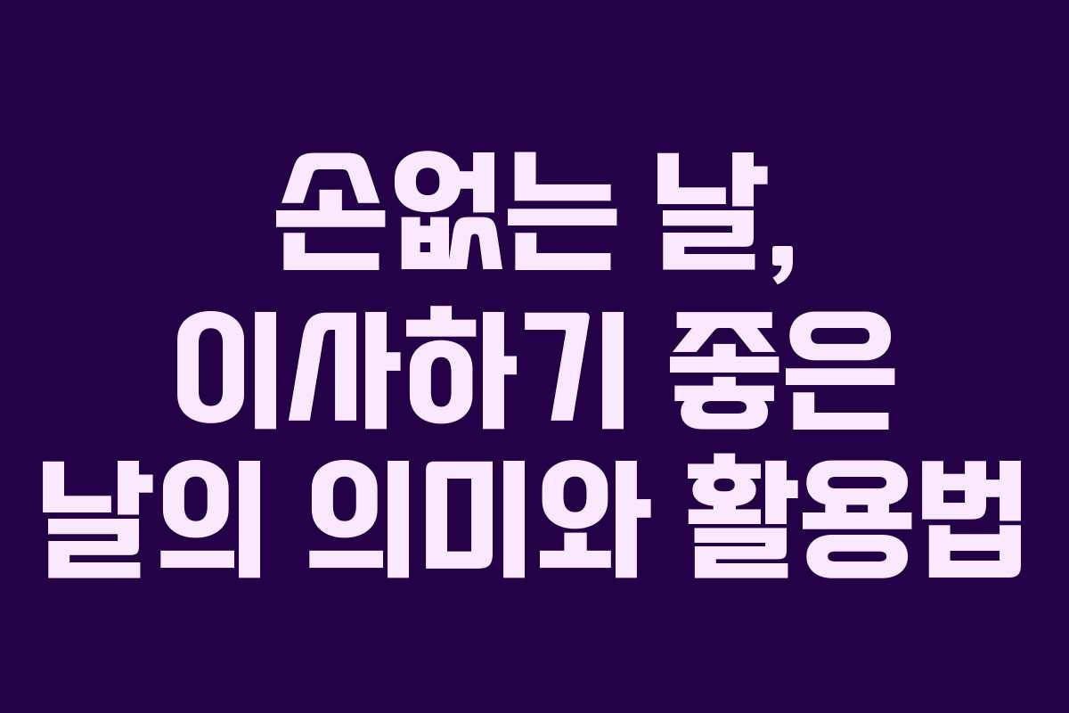 손없는 날은 악귀나 악신이 인간에게 해를 끼치지 않는 날로, 주로 음력에서 날짜가 9 또는 0으로 끝나는 날을 가리킵니다. 이 날은 이사를 하거나 중요한 결정을 내리기에 적합한 날로 여겨집니다.