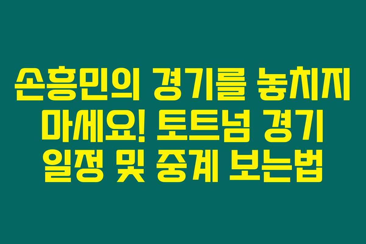 손흥민 선수의 활약을 기대하는 팬이라면 지금 바로 이 글을 확인해 보세요. 토트넘의 모든 경기를 실시간으로 즐길 수 있는 방법과 경기 일정을 상세히 정리해 두었답니다. 손흥민이 뛰는 경기를 매번 놓치기 싫다면 아래 내용을 꼭 체크해 주세요!
