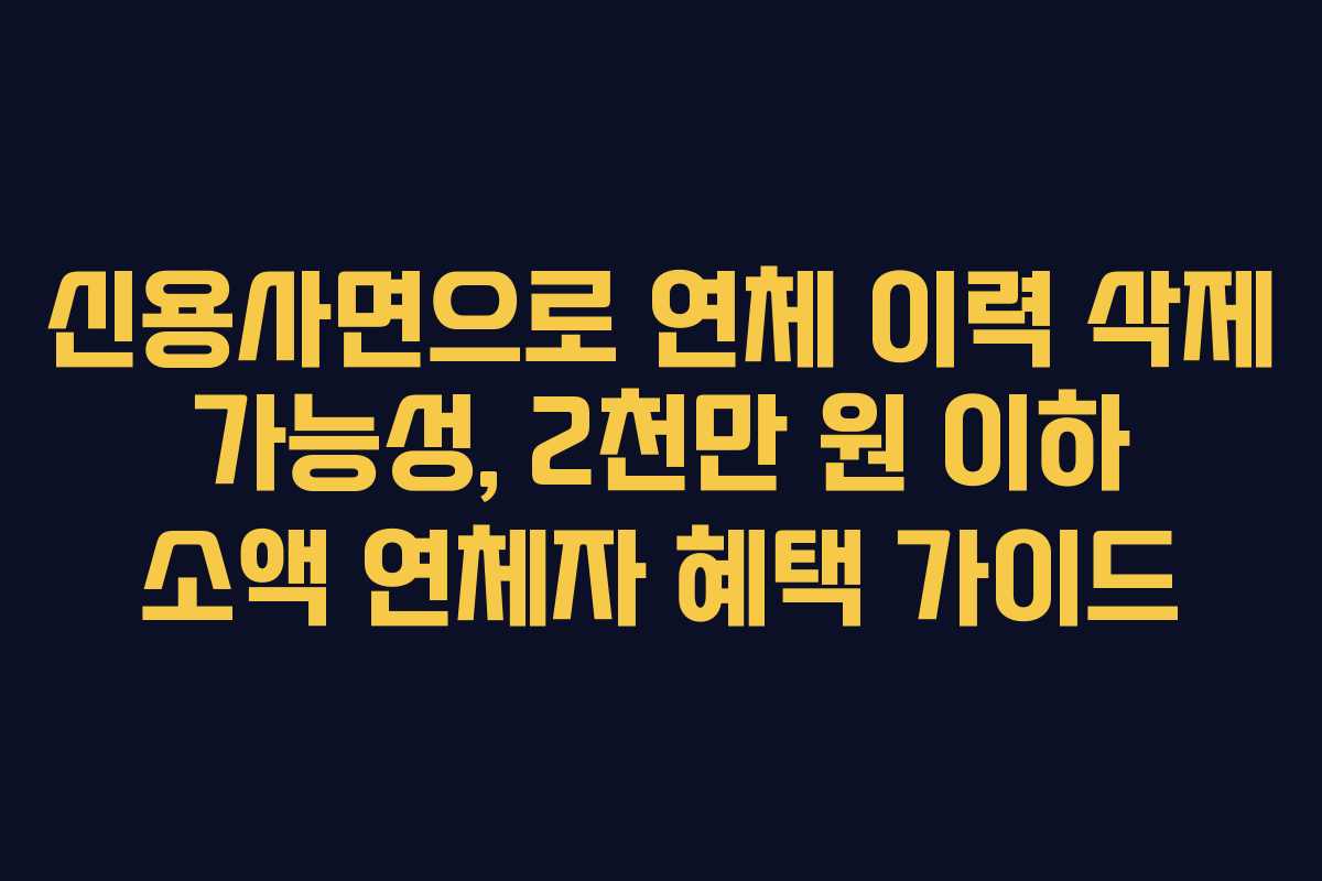 아래를 읽어보시면 2천만원 이하 소액 연체자도 신용사면 대상 여부를 확인하고, 연체이력 삭제가 신용점수에 어떤 영향을 주는지 실제 혜택 포인트를 한눈에 파악할 수 있습니다.