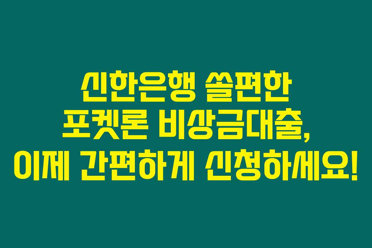 신한은행의 쏠편한 포켓론 비상금대출, 소액 대출이 필요할 때 가장 유용한 선택이 될 수 있어요. 무직자나 저소득자도 최대 500만 원까지 대출이 가능하니, 필요한 경우 아래 내용을 자세히 확인해 보시면 좋습니다!