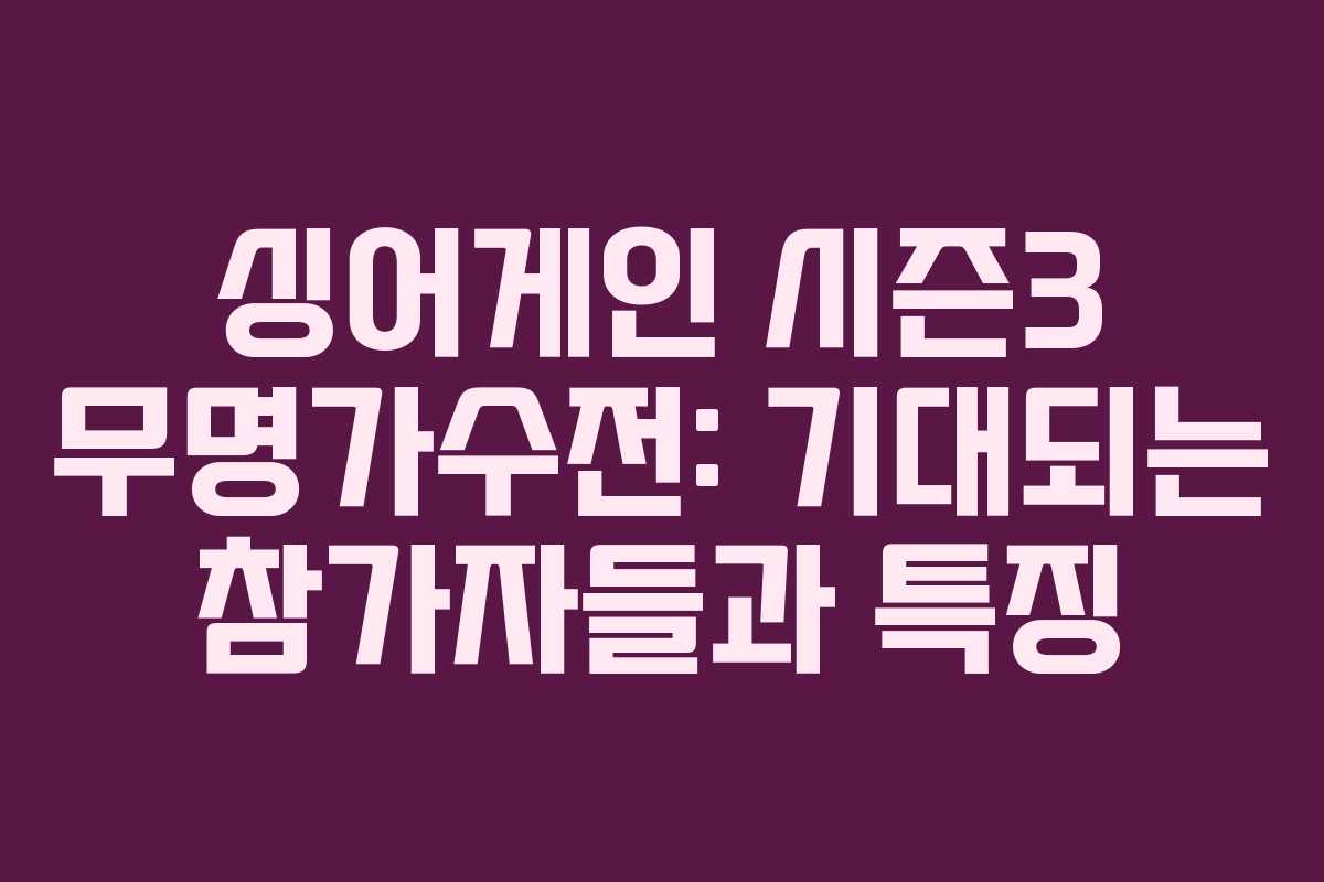 싱어게인 시즌3 무명가수전은 다양한 참가자들과 심사위원들의 조화를 통해 더욱 흥미진진한 무대를 선사할 것으로 기대됩니다. 가을의 오디션 프로그램이 어떤 감동을 주게 될지 많은 팬들의 관심이 집중되고 있습니다.