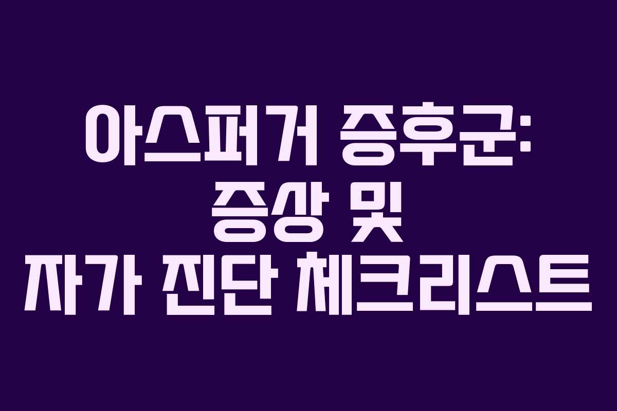 아스퍼거 증후군은 자폐 스펙트럼 장애의 한 형태로, 사회적 상호작용과 의사소통에서 특정한 어려움을 나타내는 것이 특징입니다. 이 글에서는 아스퍼거 증후군의 주요 증상, 자가 진단 방법, 그리고 대처 방안에 대해 살펴보겠습니다.