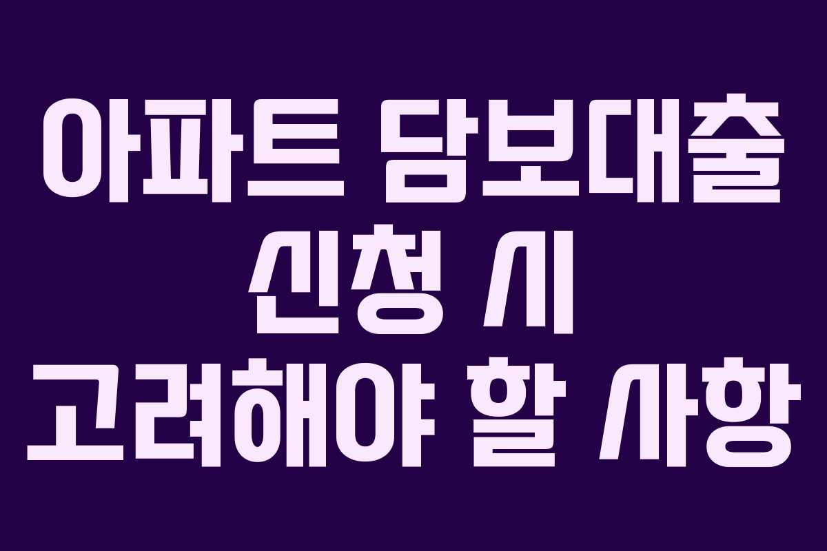아파트 담보대출은 주택 소유자에게 금전을 대출해주는 서비스로, 부동산을 담보로 활용합니다. 대출을 고려할 때는 여러 가지 주의사항을 숙지하는 것이 중요합니다.