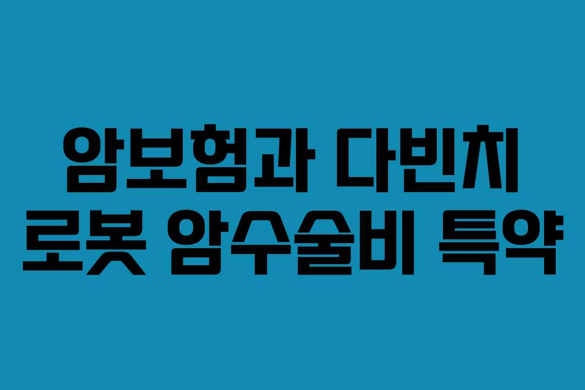 암보험은 암 진단 후 발생하는 다양한 비용을 보장해주는 상품으로, 최근에는 다빈치 로봇을 이용한 암 수술에 대한 특약도 인기를 끌고 있습니다. 이 글에서는 다빈치 로봇 암수술비 특약의 주요 사항과 보험약관, 가입 제안서를 살펴보겠습니다.