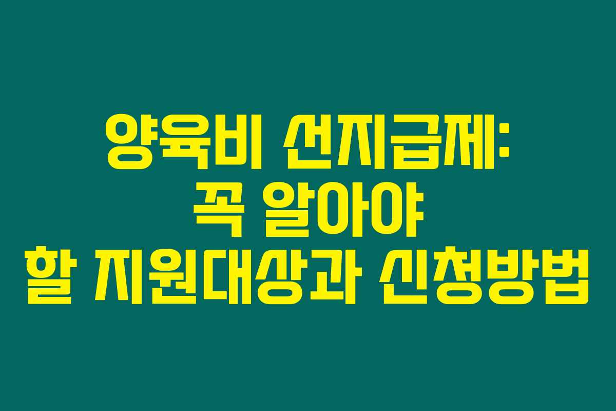 양육비 선지급제: 꼭 알아야 할 지원대상과 신청방법
