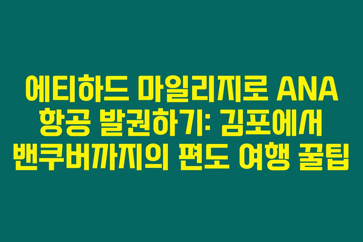 뉴 노멀 시대를 맞아 여행을 다니려는 사람들이 늘어나고 있어요. 특히 해외 자동차 여행과 비즈니스 여행은 더욱 인기를 끌고 있죠. 여러분도 김포에서 밴쿠버로의 여행을 계획하고 있다면 꼭 알아둬야 할 정보가 있습니다. 에티하드 항공 마일리지를 이용해 ANA 항공으로 편도 발권하는 방법에 대해 알아보겠습니다.