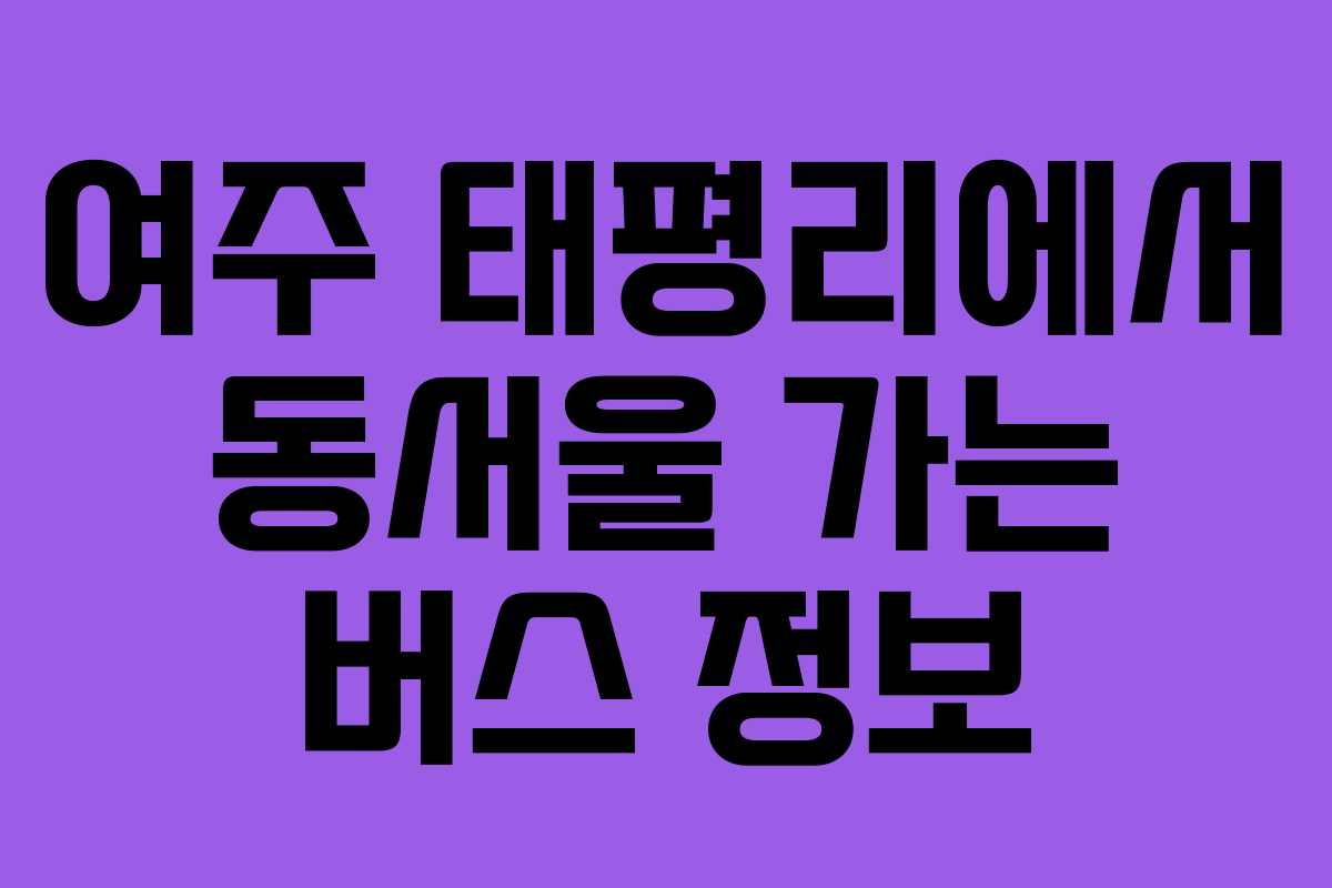 여주 태평리에서 동서울행 버스의 시간표는 변경될 수 있으니, 자주 확인하는 것이 중요합니다. 아래는 주요 노선과 시간을 정리한 표입니다.