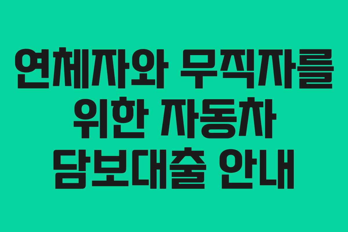 자동차 담보대출은 자동차를 담보로 하여 현금을 빌릴 수 있는 대출 형태로, 특히 신용이 좋지 않거나 무직자에게도 기회를 제공합니다. 이 글에서는 연체자와 신용불량자를 위한 자동차 담보대출 상품들을 소개하고, 각 상품의 장단점 및 신청 방법에 대해 알아보겠습니다.