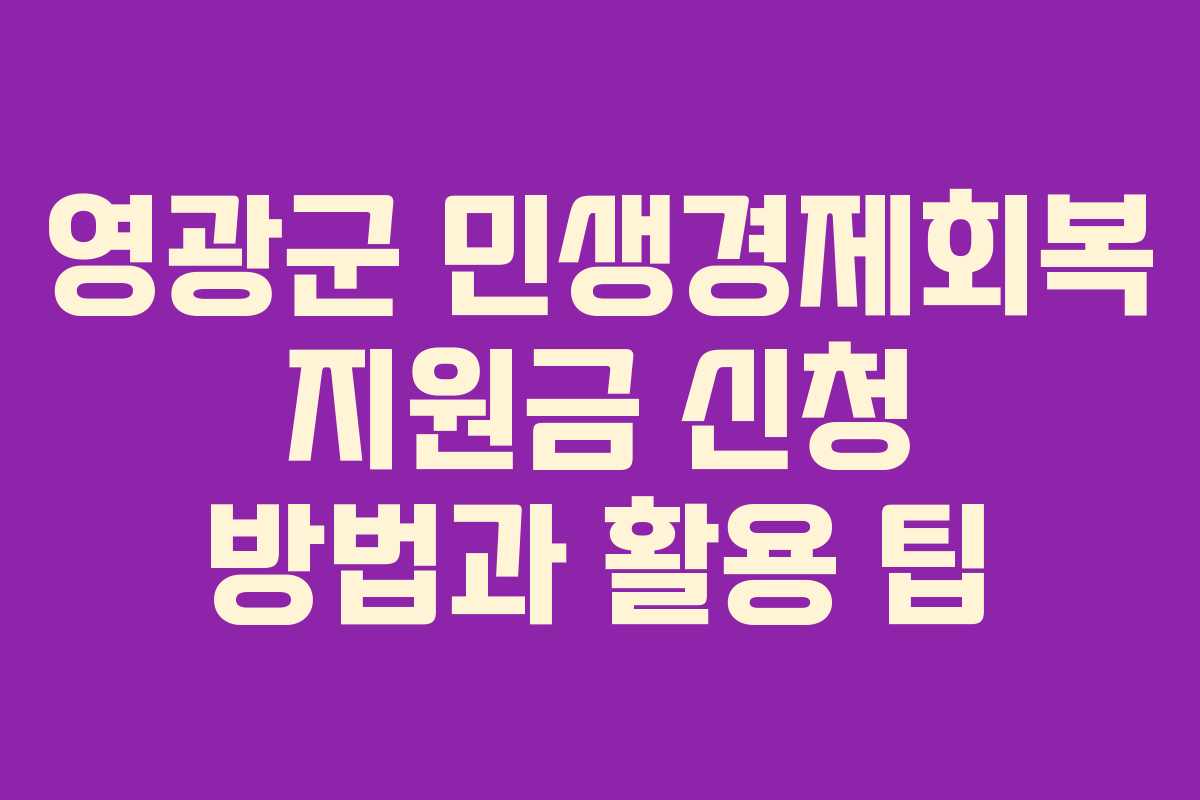 영광군 민생경제회복 지원금 신청 방법과 활용 팁