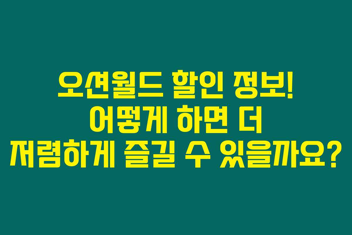 오션월드 이용 요금 할인에 대해 관심이 많으신가요? 그러면 꼭 아래를 읽어보셔야 해요. 입장료가 부담스러워서 오션월드를 망설인 적 있으셨죠? 하지만 이제는 걱정하지 않으셔도 된답니다. 이 글 한 번으로 오션월드 할인 정보를 완벽하게 정리해드릴게요. 아주 다양한 할인 방법을 소개할게요. 본인에게 가장 알맞은 방법으로 오션월드를 즐기는 팁을 챙기세요!