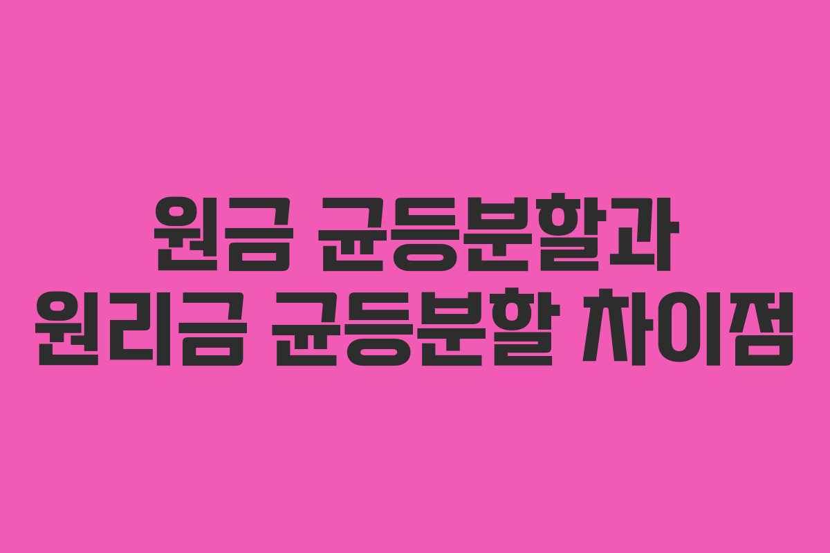 대출 상환 방식으로 흔히 사용되는 원금 균등분할과 원리금 균등분할의 차이에 대해 자세히 살펴보겠습니다.