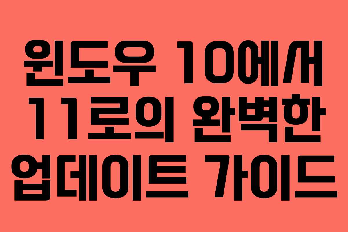 윈도우 10에서 11로의 완벽한 업데이트 가이드