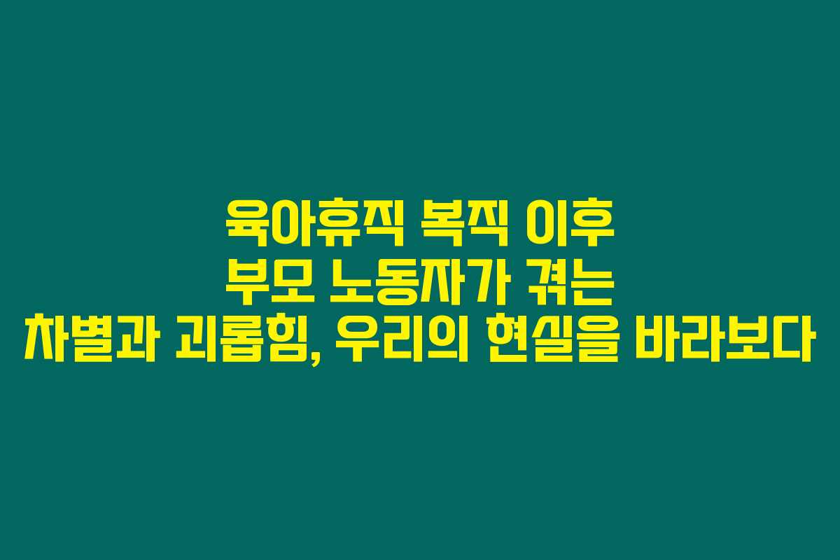 제가 직접 경험해본 결과로는, 육아휴직 복직 후 차별과 괴롭힘을 당하는 부모 노동자에 대한 이야기는 그 어느 때보다 중요한 주제가 아닐 수 없습니다. 이 글에서는 직장갑질119가 발표한 보고서를 바탕으로 육아휴직 복직 이후 부모 노동자들이 겪는 여러 문제를 심도 있게 살펴보도록 하겠습니다.