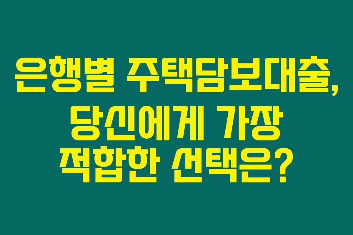 제가 알아본 바로는, 주택담보대출은 집을 구매하는 데 있어 가장 중요한 요소 중 하나입니다. 집을 가지고 싶다면, 각 은행에서 제공하는 다양한 대출 상품을 비교하는 것이 중요한데요. 아래를 읽어보시면 여러 은행의 주택담보대출 상품과 특징에 대해 자세히 알아보실 수 있습니다. 특히, 고정금리와 변동금리, 대출 한도, 신용도와 같은 조건을 고려하여 자신에게 맞는 상품을 고르는 방법을 설명드리겠습니다.