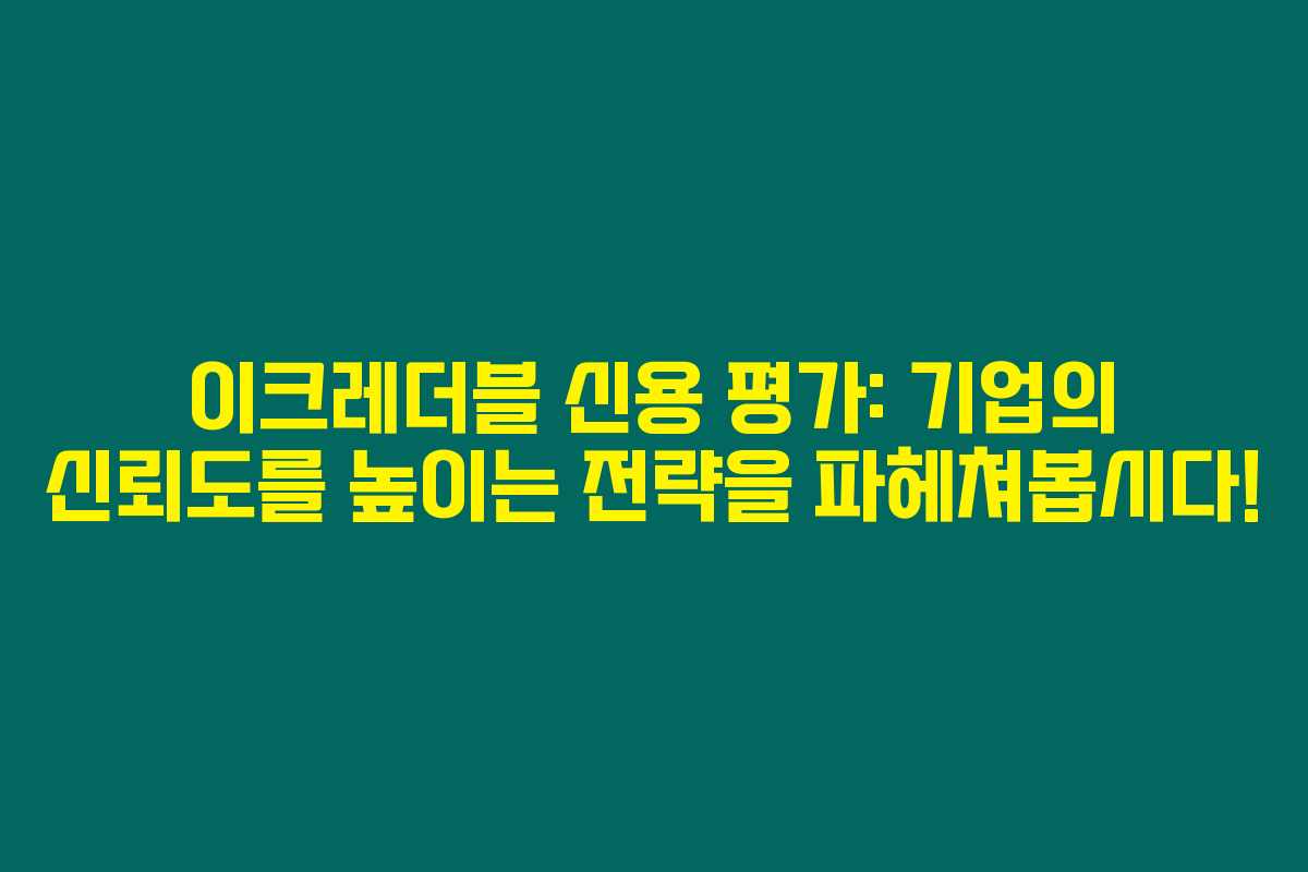 기업의 신용 평가는 이크레더블 신용 평가를 기준으로 진행되며, 이를 통해 안정적인 금융 거래와 우대 조건을 확보할 수 있답니다. 신용 등급을 지속적으로 개선하는 것이 기업 성장과 금융 혜택을 극대화하는 길입니다. 여러분도 함께 신뢰 높은 기업으로 성장해보아요!
