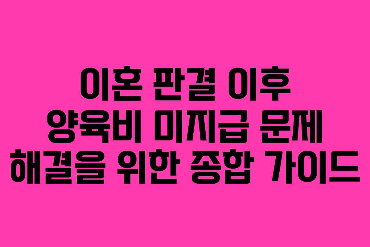 이혼 판결 이후 양육비 미지급 문제 해결을 위한 종합 가이드