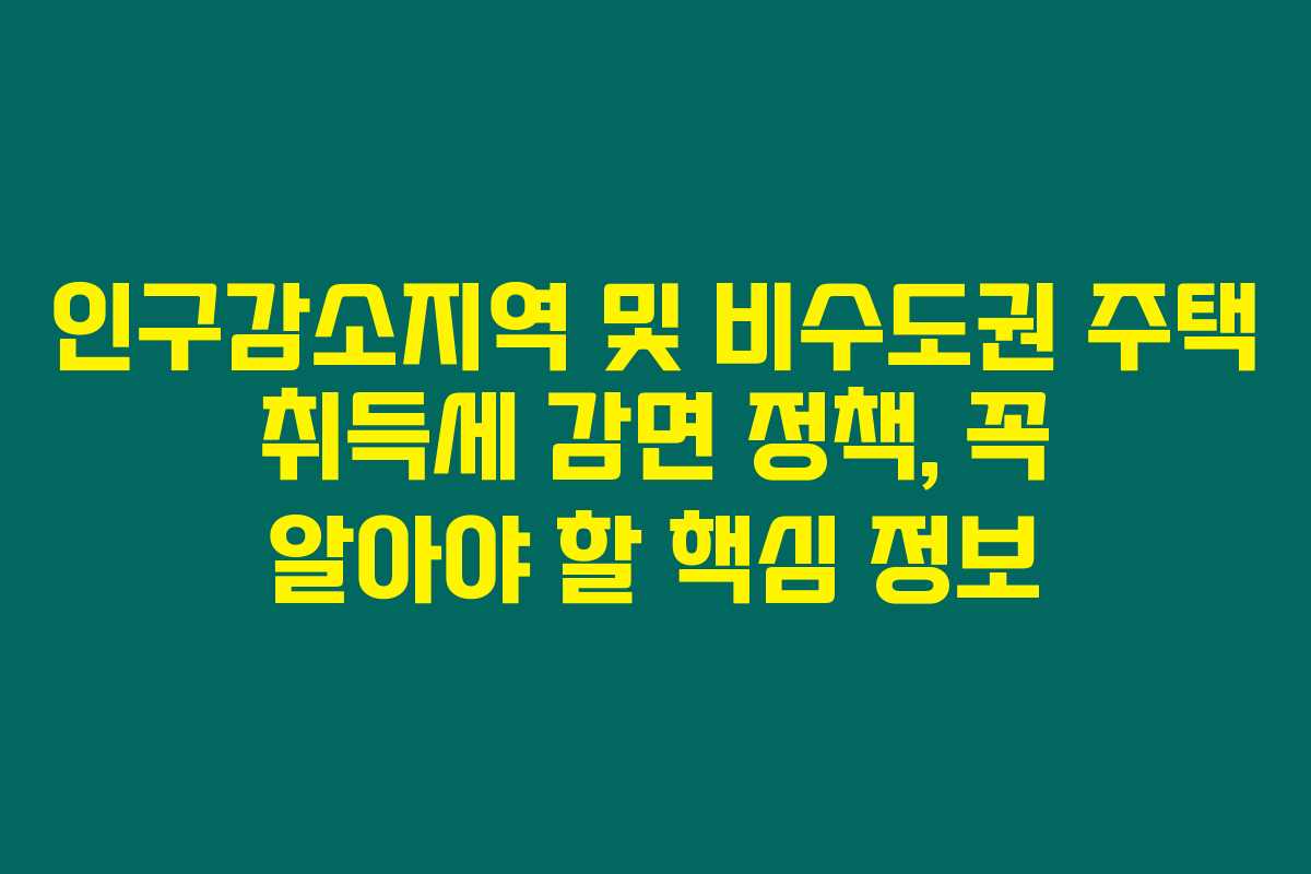 인구감소지역에 대한 주택 취득세 감면 정책은 인구가 감소하는 지역의 경제 활성화를 목표로 하고 있습니다. 이러한 지역에서 주택을 구매할 때 세금을 감면함으로써, 신규 주택 구매자의 유입을 촉진하고자 합니다. 저는 이러한 정책이 비용 부담을 줄이고, 주택 시장의 활성화에 크게 기여할 것이라고 생각해요.