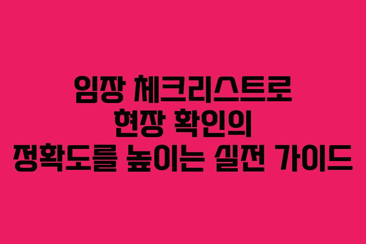 키워드: 임장 체크리스트, 부동산 투자, 현장 점검, 매물 평가, 개발 호재, 재건축 가능성, 교통 편의성, 학군 분석, 일조량 확인, 현장 기록, 엑셀 공유,