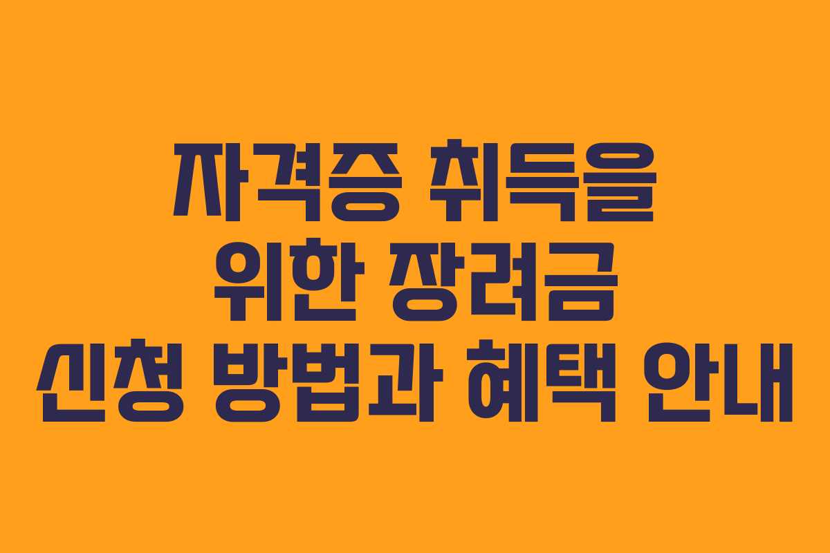 자격증 취득을 위한 장려금은 정부나 관련 기관에서 지원하는 금전적 혜택으로, 개인이 자격증을 취득하여 직업 능력을 향상시키고 취업 경쟁력을 높이는 데 도움을 줍니다. 자격증의 종류에 따라 지원 금액이나 신청 방법이 다를 수 있으며, 자격증 취득 후 일정 기간 내에 신청해야 합니다.