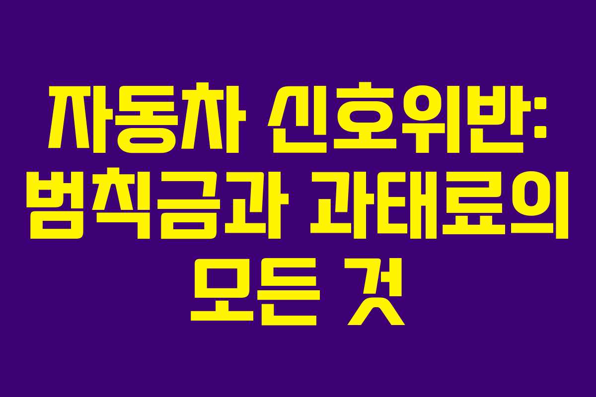자동차 신호위반은 교차로에서 신호등의 지시에 따르지 않는 행위로, 교통 안전을 위협하는 주요 요인 중 하나입니다. 이번 글에서는 신호위반에 대한 범칙금과 과태료의 개념, 차이점, 부과 기준, 대처 방법에 대해 살펴보겠습니다.