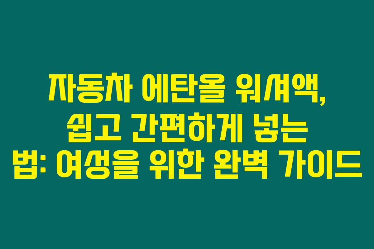 자동차 에탄올 워셔액, 쉽고 간편하게 넣는 법: 여성을 위한 완벽 가이드