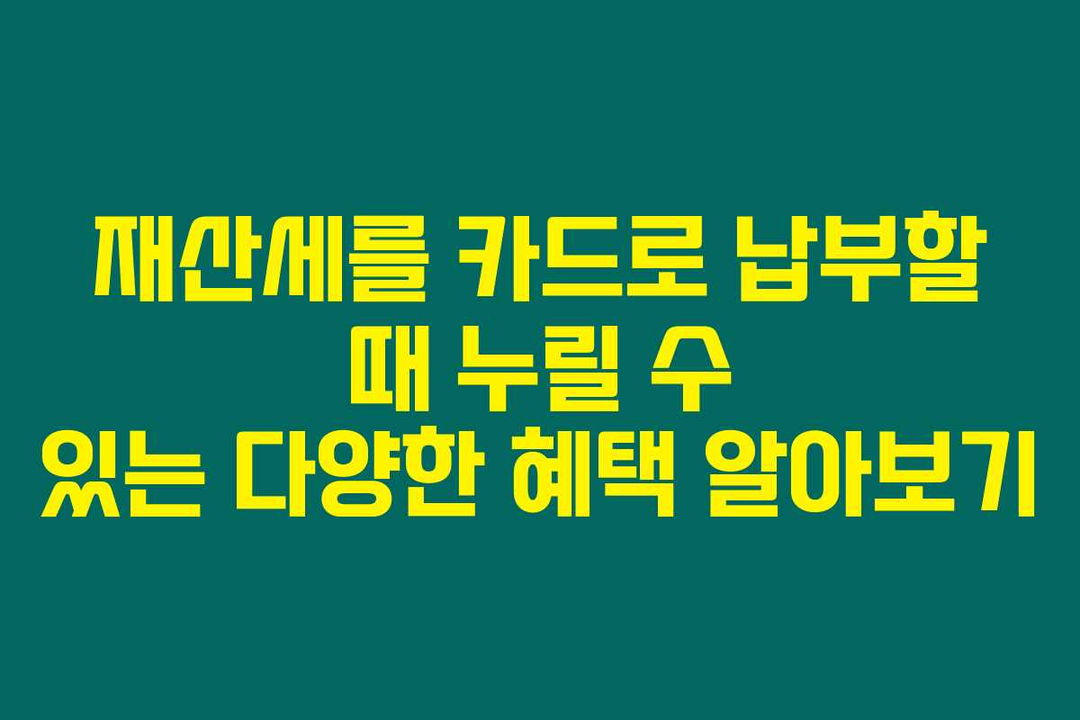- 1. 재산세를 카드로 납부하면 어떤 혜택을 받을 수 있나요?