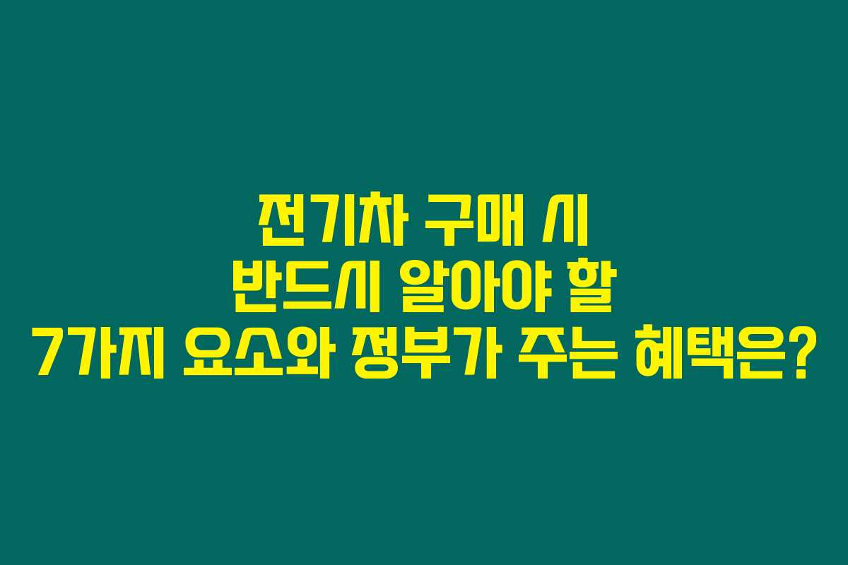 전기차 구매 시 반드시 알아야 할 7가지 요소와 정부가 주는 혜택은?