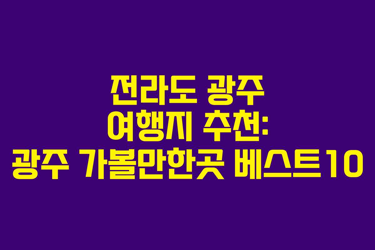 전라도 광주는 예술과 문화가 풍부한 도시로, 다양한 매력적인 명소들이 가득합니다. 이번 글에서는 광주에서 꼭 가봐야 할 여행지 10곳을 소개하며, 각 명소의 위치와 꿀팁을 함께 안내하겠습니다.