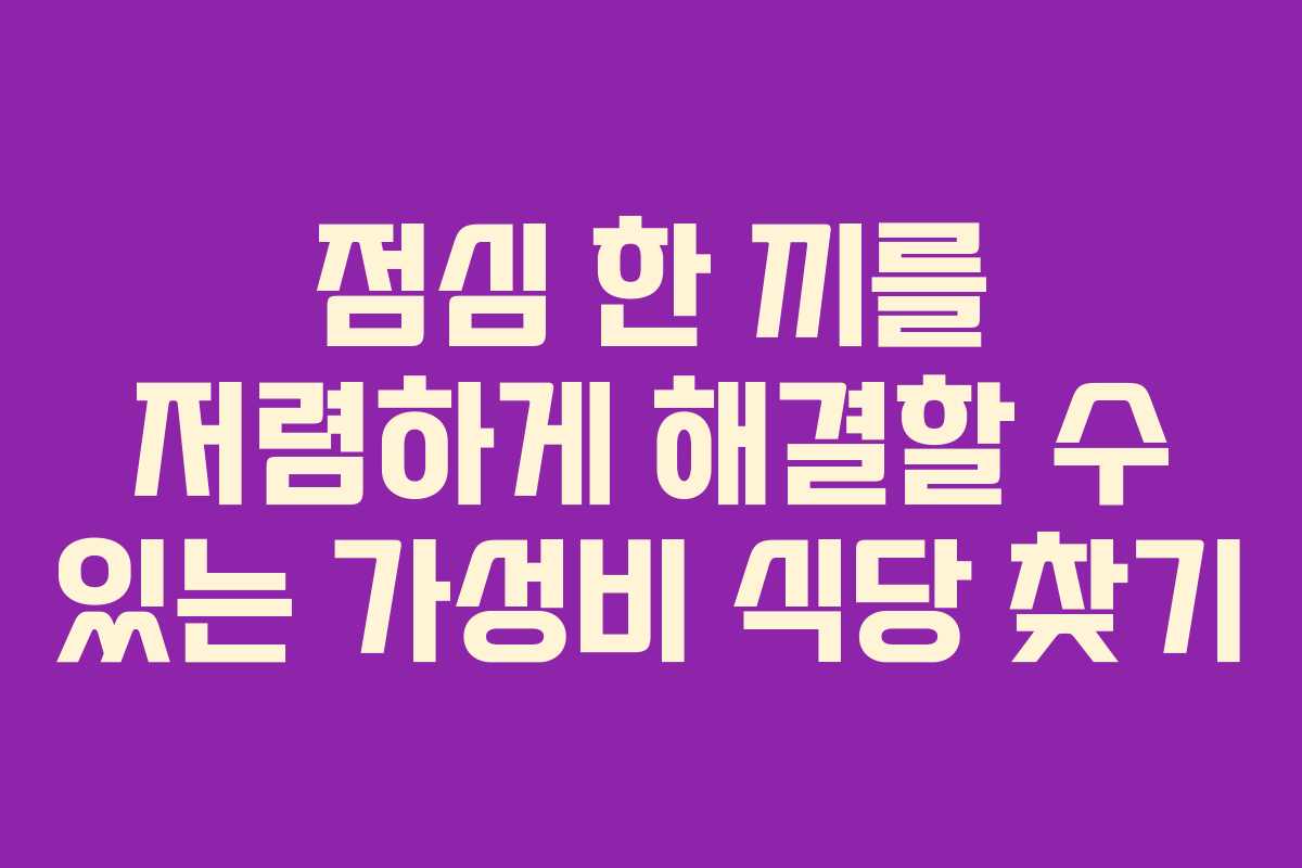 가성비 점심 식사를 위한 실전 가이드