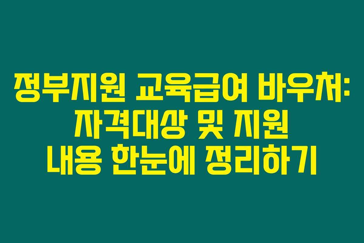 아이들 교육을 돕기 위한 정부지원 교육급여 바우처가 있다는 사실 알고 계신가요? 교육비 부담으로 힘들어하는 가정에게 큰 도움이 될 수 있답니다. 이 글에서는 정부지원 교육급여 바우처의 자격대상, 지원 내용, 신청 방법에 대해 자세히 알아보겠습니다. 교육급여 바우처가 필요한 분들을 위해 반드시 확인해보아야 할 내용입니다.