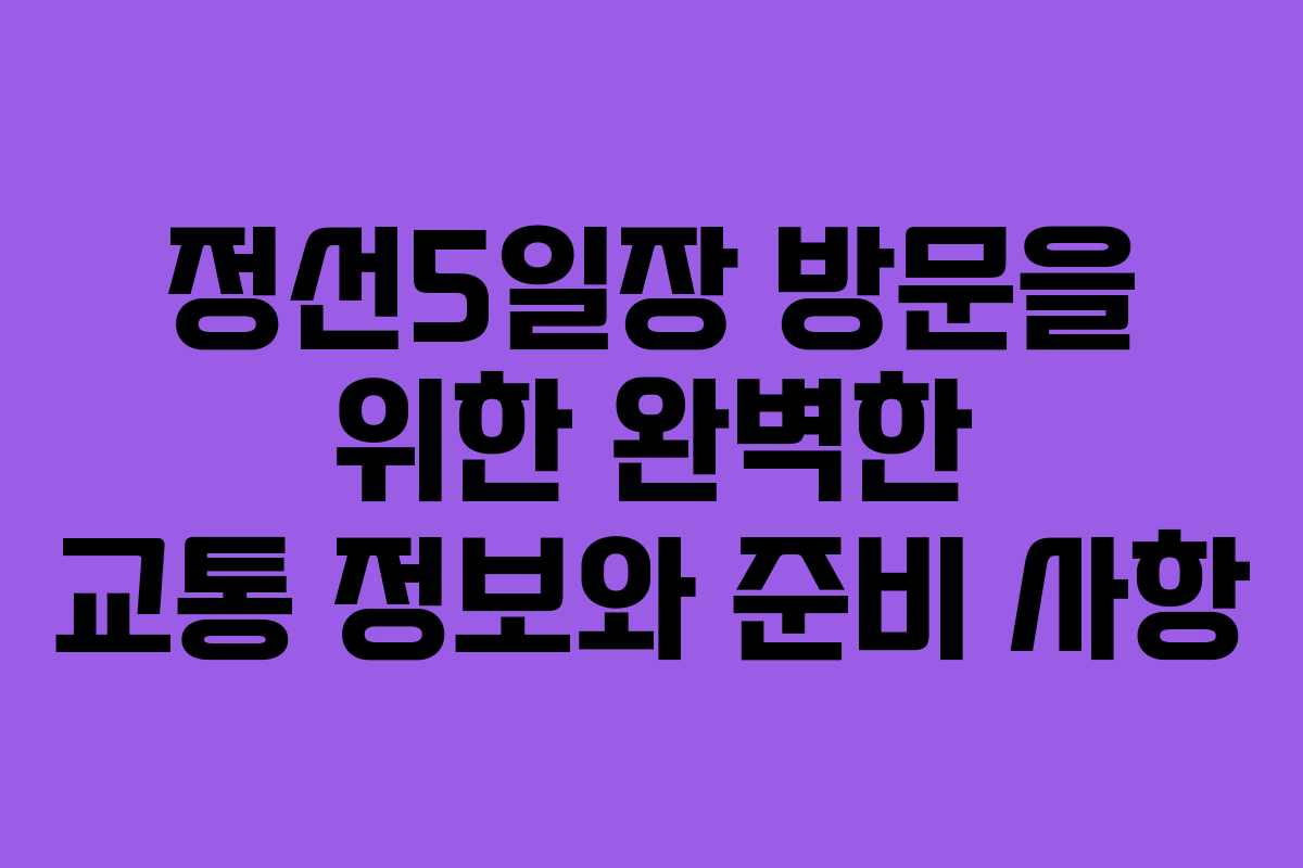 정선5일장을 방문하기 위해 필요한 교통 정보와 유의사항을 정리하여 여러분의 여행이 더 원활하고 즐거울 수 있도록 돕겠습니다. 이 글에서는 이동 경로와 팁을 포함하여, 정선5일장에 대한 전반적인 정보를 제공하겠습니다.