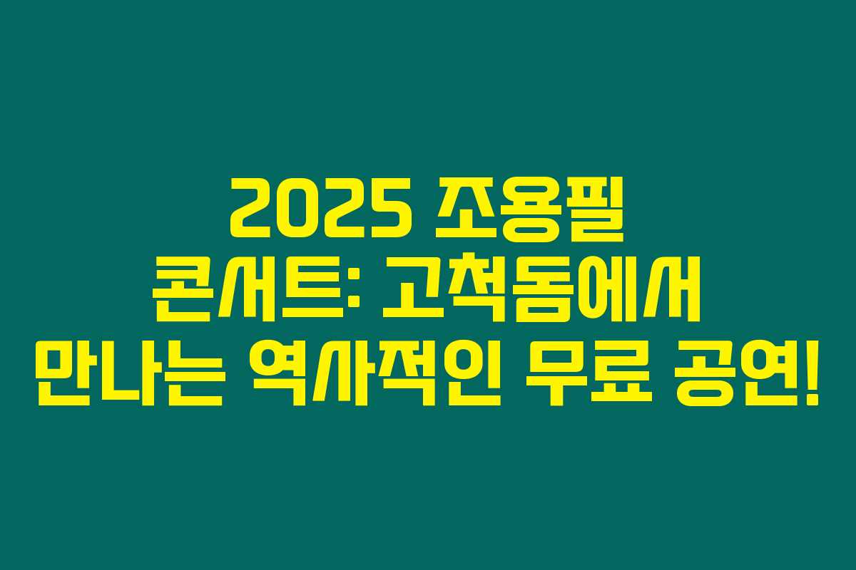 2025년 9월 6일, 서울 고척 스카이돔에서 한국 음악의 전설 조용필이 특별한 무료 콘서트를 개최합니다. 그의 음악 인생을 담은 이 공연은 광복 80주년을 기념하는 의미를 지니고 있어요. 아래를 읽어보시면, 특별한 공연의 내용과 기대할 수 있는 대표곡 라인업에 대해 알아볼 수 있습니다.