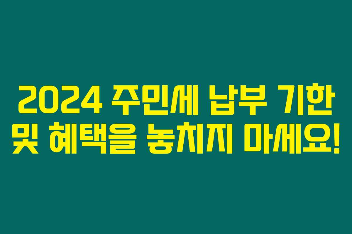 2024년 주민세 납부 시즌이 다가왔어요. 주민세를 기한 내에 납부하지 않으면 부가세가 붙어서 더 큰 부담이 될 수 있답니다. 혹시 주민세에 대한 정보가 궁금하신가요? 아래를 읽어보시면 정확한 기한과 방법 그리고 감면 혜택을 놓치지 않는 법을 알려드릴게요.