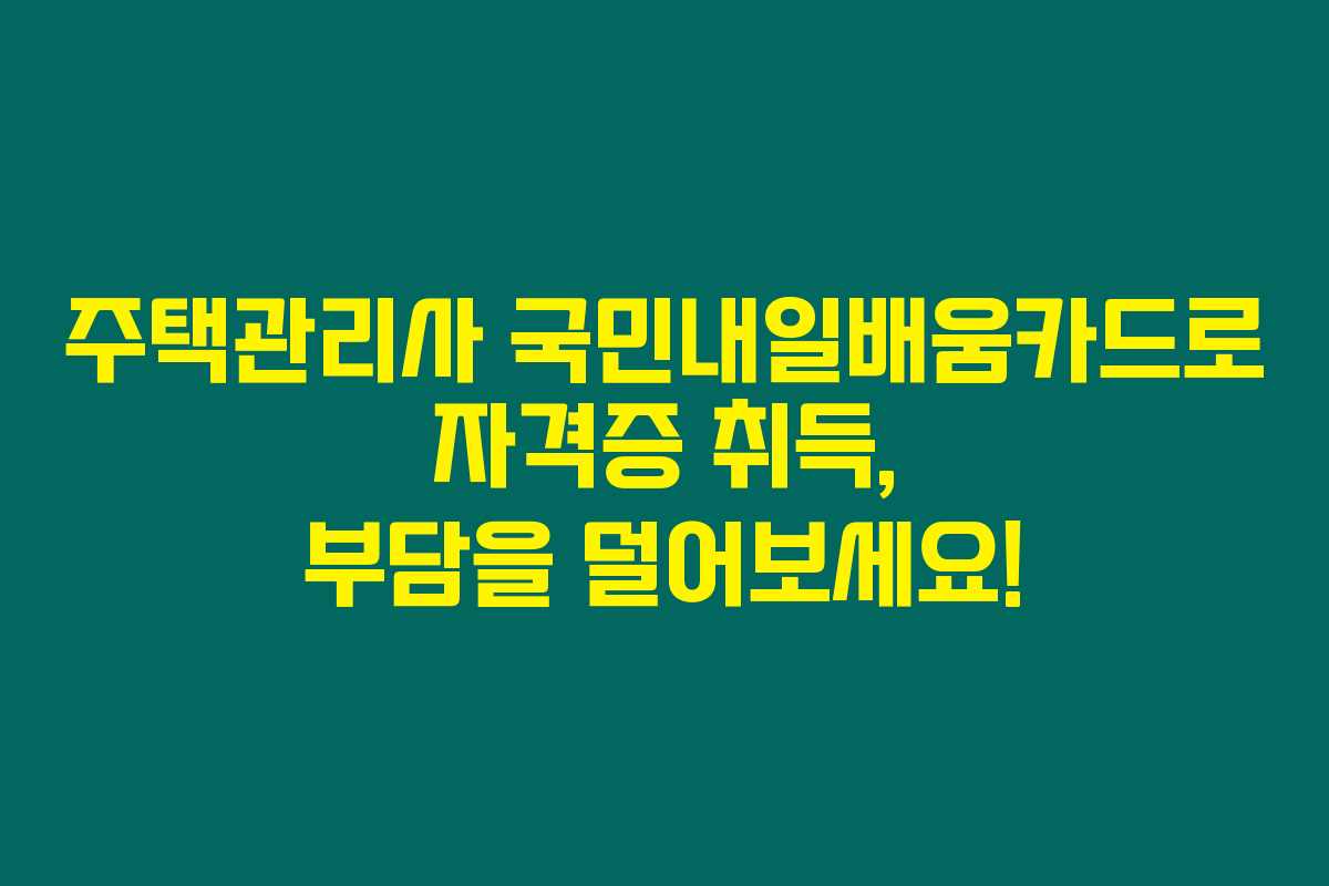주택관리사 자격증을 취득하기 위한 절차와 방법을 알아보니, 국민내일배움카드가 정말 유용한 지원 제도라는 것을 느꼈어요. 카드 발급을 통한 국비 지원으로 보다 쉽고 효율적으로 자격증 취득의 문을 열어보세요.