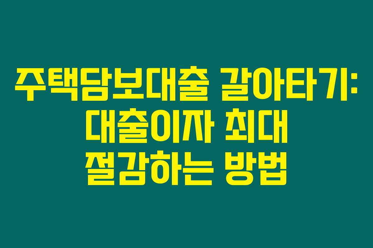 주택담보대출 갈아타기: 대출이자 최대 절감하는 방법