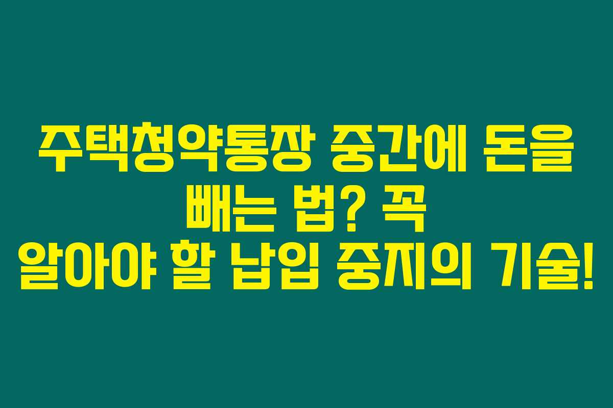 주택청약통장에서 돈을 중간에 빼는 방법은?