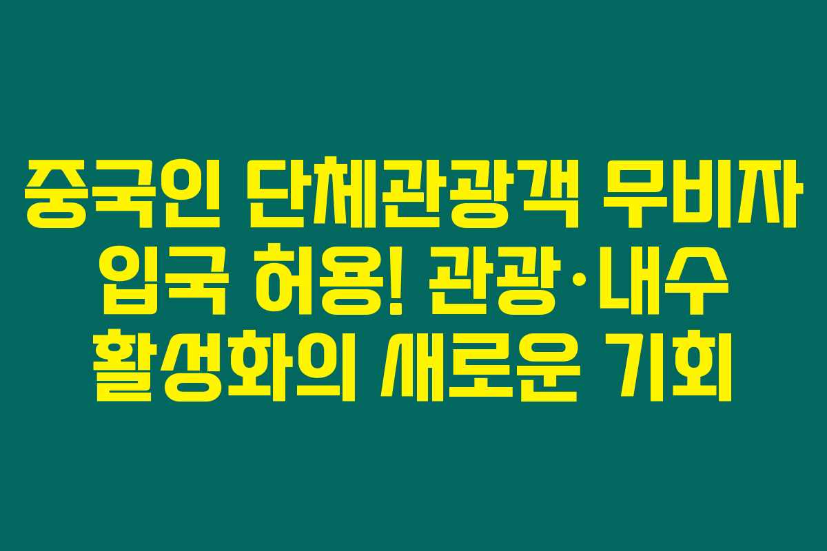 정부가 드디어 중국인 단체관광객의 무비자 입국을 한시적으로 허용합니다. 이번 조치는 코로나19 이후 침체된 관광 시장 회복을 위해 필요하다고 느껴져서 마련된 정책이에요. 이번 기회를 통해 관광업계와 소상공인들의 문제를 해결할 수 있을 것 같아요. 아래를 읽어보시면 이 정책이 어떻게 시행되고, 어떤 효과를 기대할 수 있는지 자세히 알아볼 수 있어요.