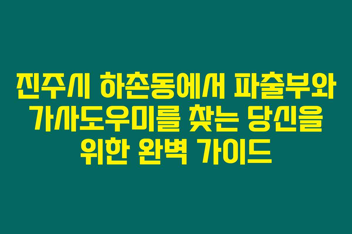 현대인의 바쁜 일상 속에서 가사도우미와 파출부 서비스는 너무나도 큰 도움이 되죠. 특히 진주시 하촌동에 살고 계신다면, 다양한 옵션과 가격대를 통해 효율적인 생활을 이끌어낼 수 있어요. 아래를 읽어보시면 하촌동의 가사도우미와 파출부 서비스에 대한 모든 정보를 얻을 수 있습니다.