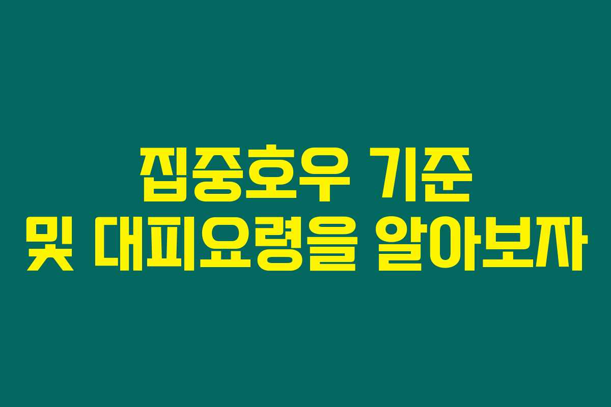 집중호우는 예고 없이 찾아와 우리 생명을 위협하는 자연재해입니다. 그렇기 때문에 집중호우 기준과 대피요령을 미리 이해하고 준비하는 것이 필수입니다. 아래를 읽어보시면 여러분과 가정을 안전하게 지킬 수 있는 방법을 알게 될 거예요.